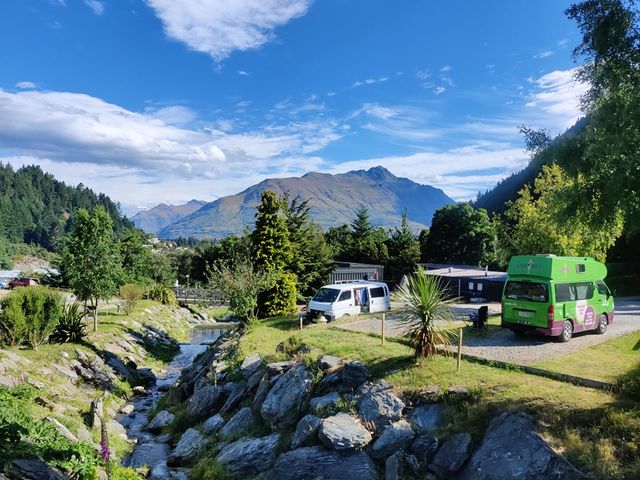 A traditional Swiss styled studio nestled in the trees of Mt Ben Lomond. Views of Queenstown Hills and our natural campsite with a river right on your door step. You will have access to a terraced garden complete with river, waterfalls and woodland.